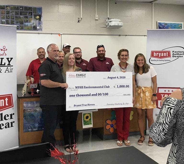 Cheyenna Novotny, a West Florida High School science teacher who also recently achieved the 2019-2020 Escambia County Teacher of the Year Award, was presented with a $1,000 check, which will go towards the WFHS Environmental Club. She was nominated for the Bryant True Hero Award for not only her hard work and dedication to the students she teaches in the community but also her efforts in promoting environmental preservation and responsibility. In her honor, we have pledged to install a new HVAC unit at her home. Congratulations Mrs. Novotny on achieving the prestigious Bryant True Hero Award!