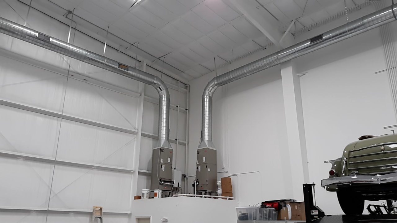 We are excited to share some photos from a commercial job that we recently completed at an airplane hanger for some beautiful cars. This customer installed a brand new Bryant Variable-Speed Evolution Extreme system. Take a look at the images from the installation process below, and the finished product. Click here to learn more about our commercial HVAC services!