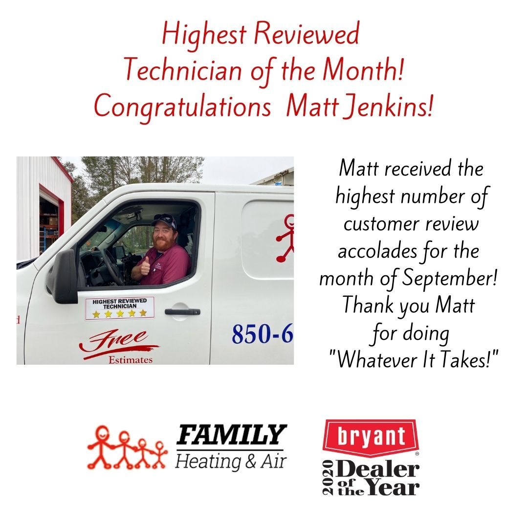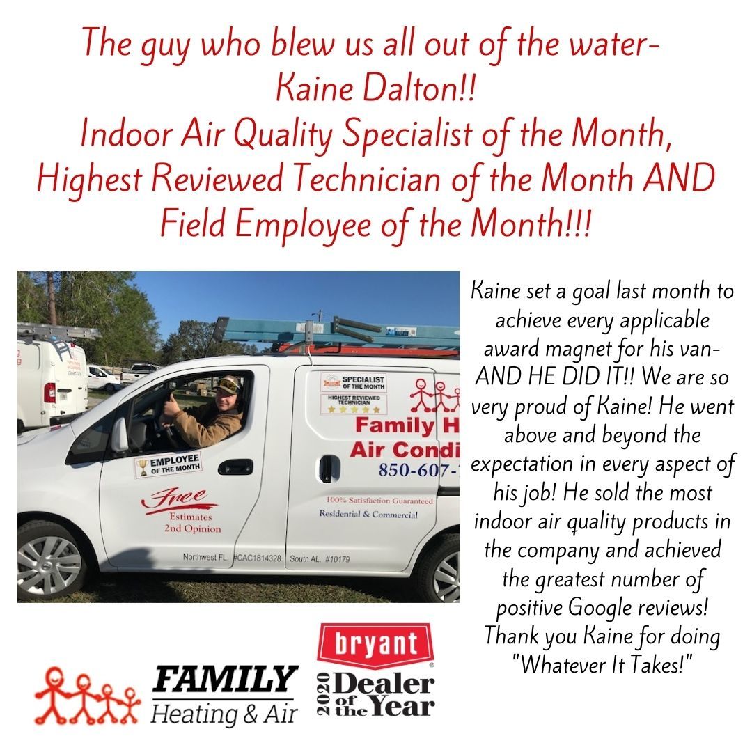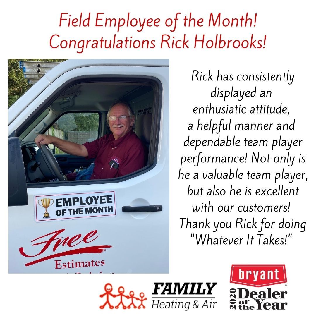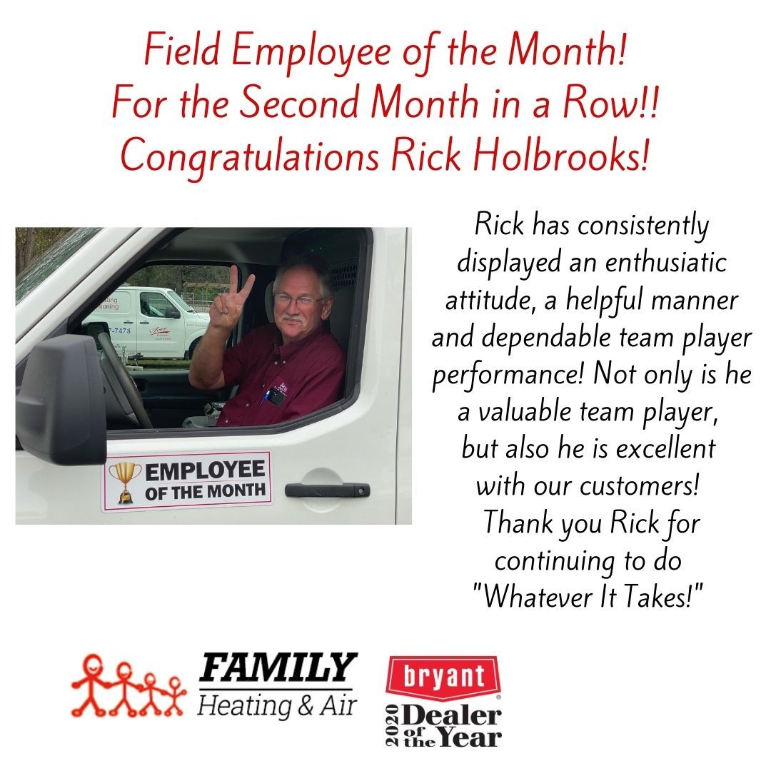At Family Heating & Air, we value our hard-working employees, and love to recognize the amazing job that they do. Below are the current Employees of the Month for our four categories.