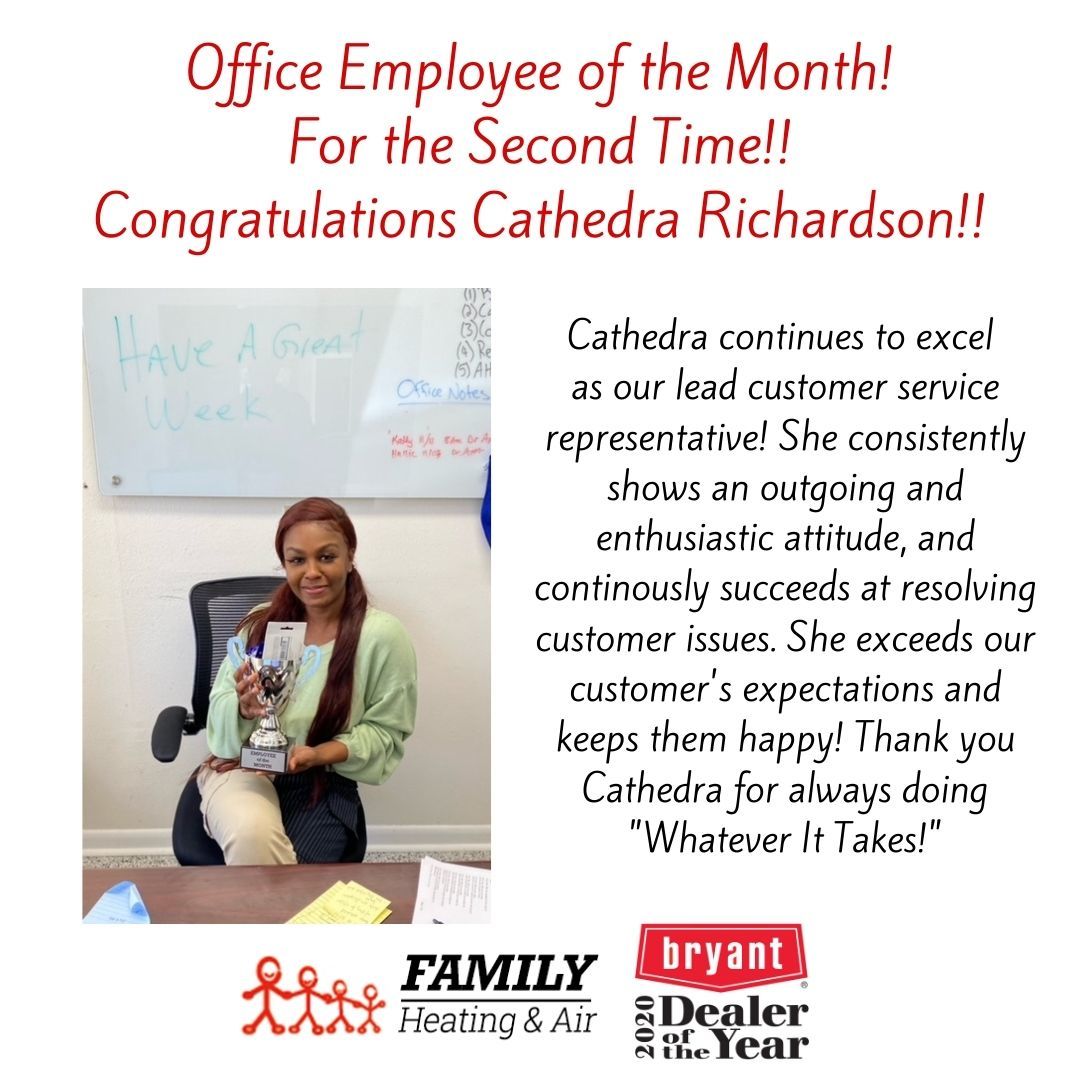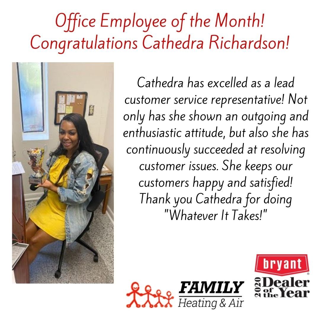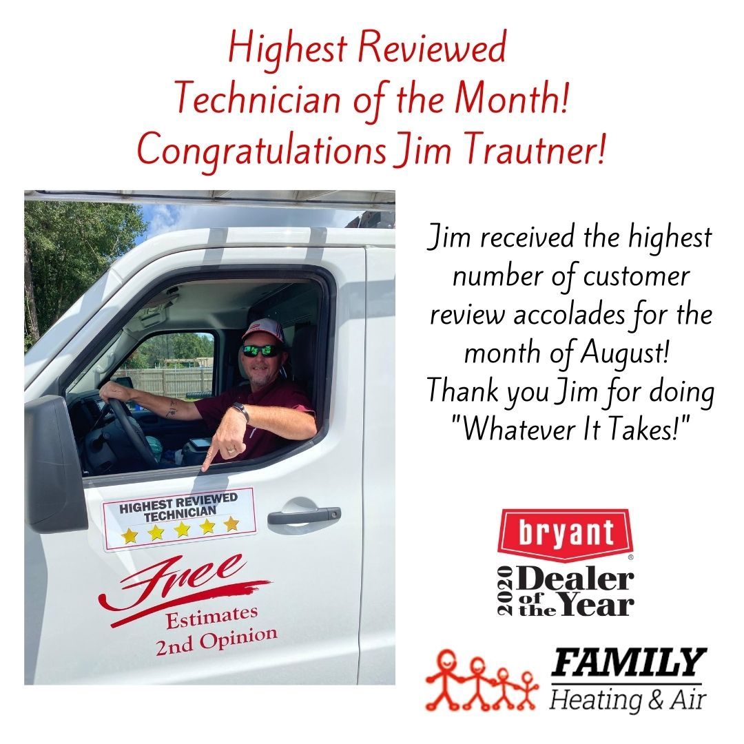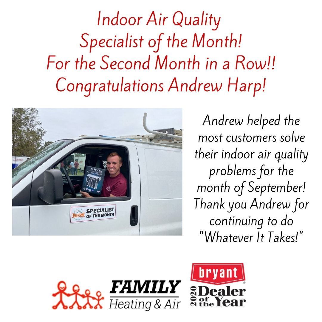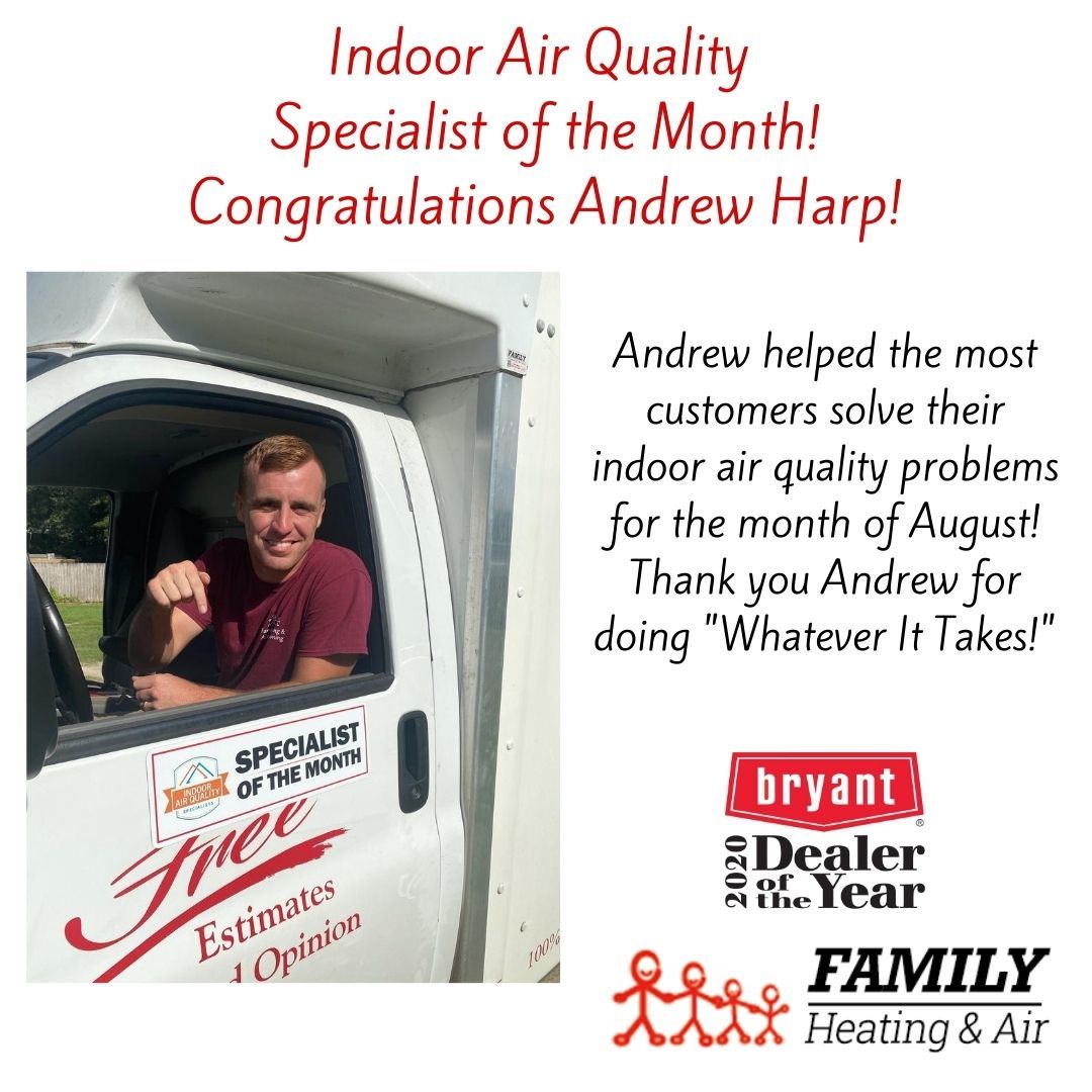 At Family Heating & Air, we value our hard-working employees, and love to recognize the amazing job that they do. Below are the current Employees of the Month for our four categories.